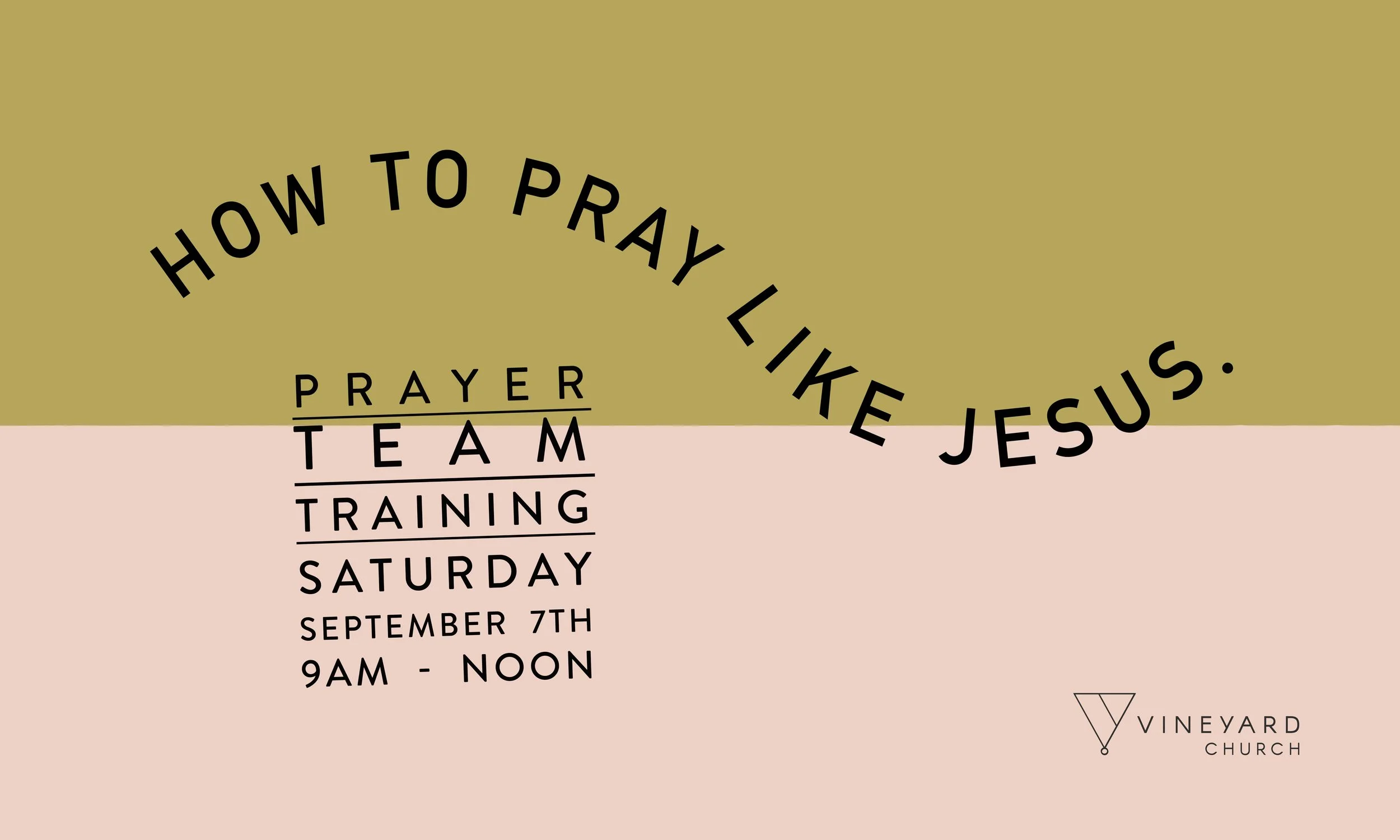 Jesus said we would be able to do that same kind of works he did, and even more! Join us as we learn how to listen to the Holy Spirit and pray like Jesus for the needs of others. This training is required to be a part of our Sunday prayer team. Sign up to attend here, or on the clipboard in the cafe.