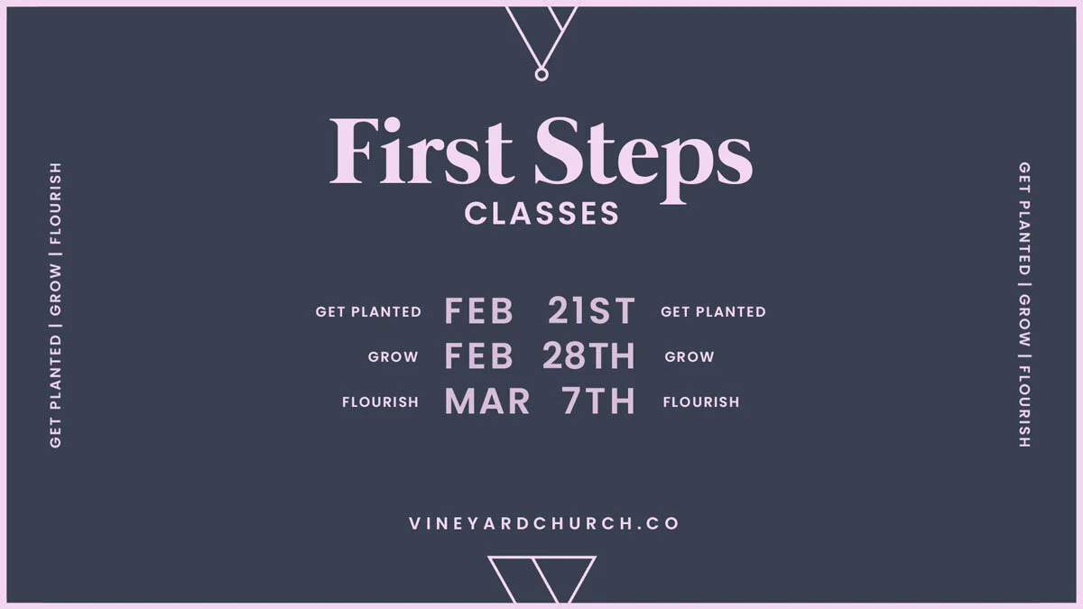 A journey of a thousand miles begins with the first step. Our First Steps classes are designed with that in mind. They are not in-depth classes in which you will be taught all you need to know. Rather, they are opportunities to discover how Vineyard Church can help you to live a Jesus-shaped life, whether you are just beginning to follow Jesus or you’ve been on that path for decades. Our three First Steps classes are Get Planted, Grow, and Flourish.