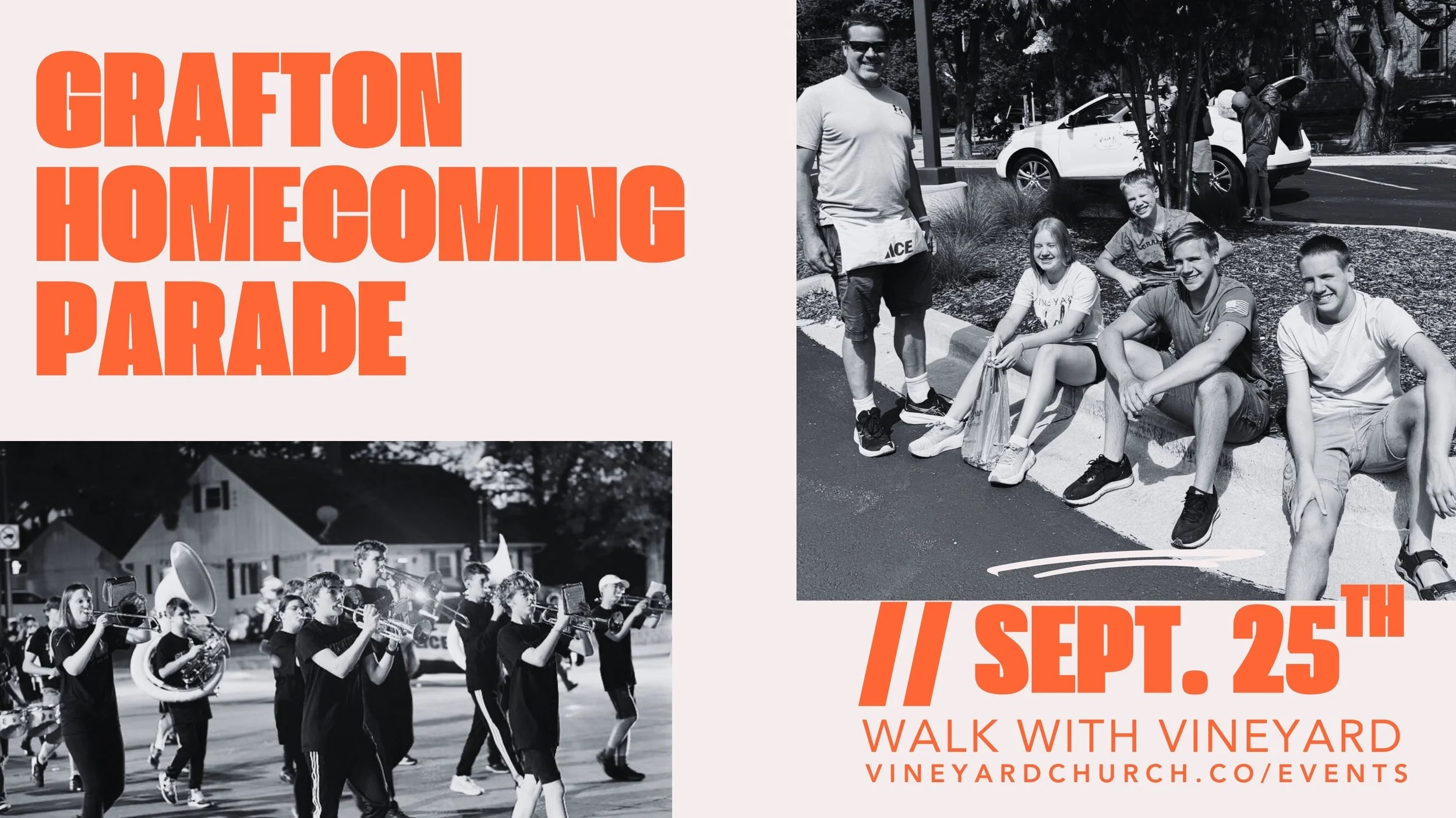 Ride or walk in the Grafton Homecoming Parade! We will have a trailer for those who wish to ride and toss candy and the walkers will be passing out Packer Party Invite cards/candy/tiny Jesus. The parade will last about an hour. Line up starts at 5:30 pm with the parade kick off at 6:00 pm. The parade ends at Grafton High School.