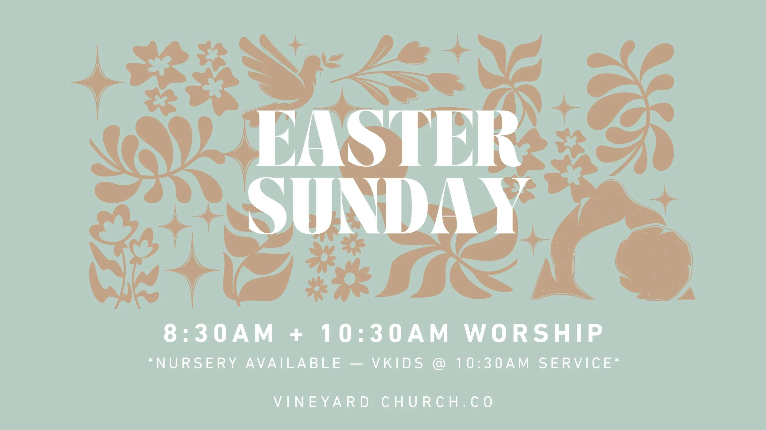 Join us this Easter as we celebrate the hope, joy, and new life found in Jesus. Bring your family and friends and experience a welcoming community, uplifting worship, and a powerful message of resurrection hope. We can’t wait to celebrate with you! Child care and Vineyard Kids available at the 10:30 am service.